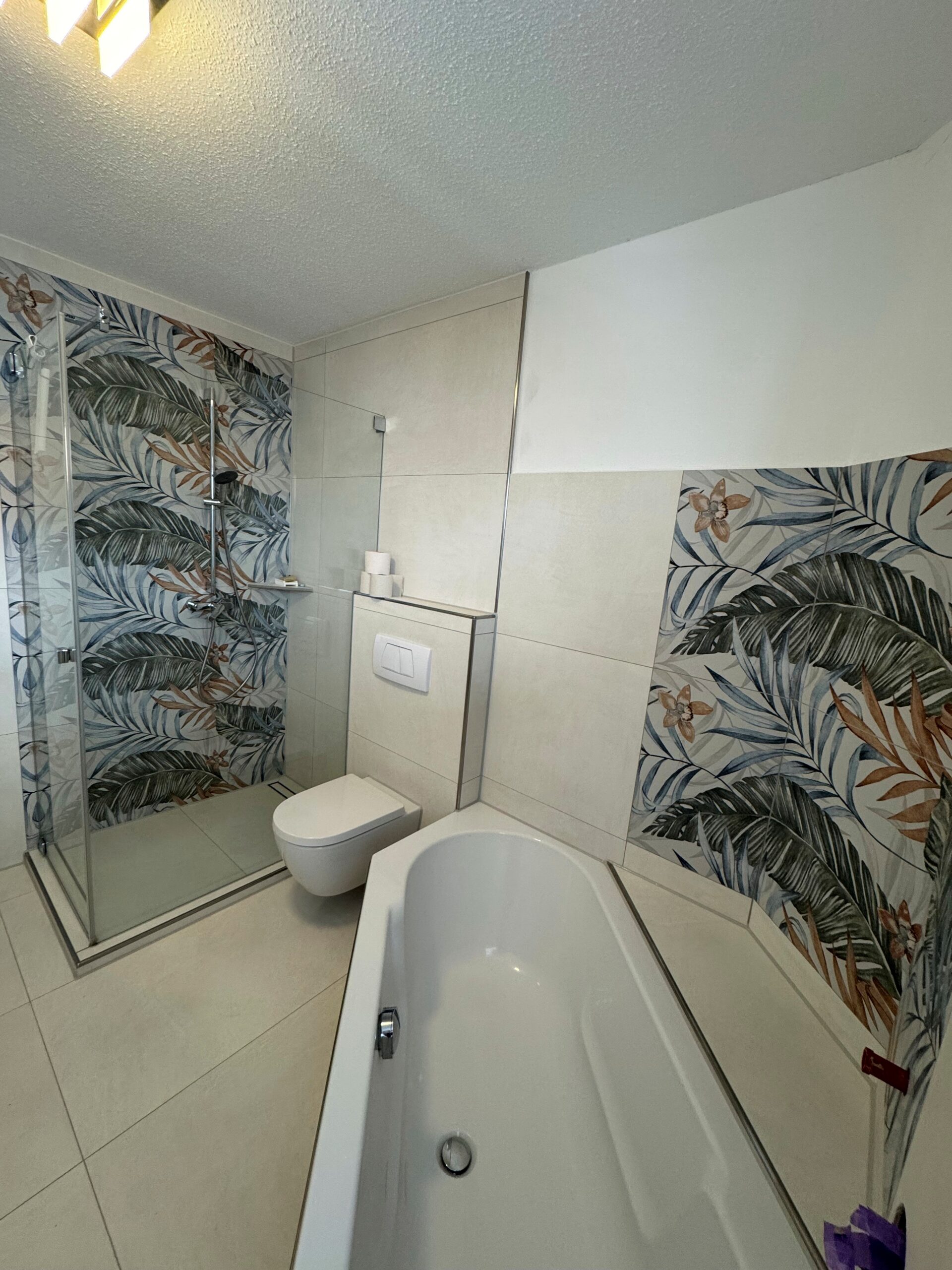 - BäderVom komfortablen Gäste-WC bis zum exklusiven Wellnessbad: Wir realisieren für Sie individuelle Badgestaltungen nach Ihren Vorstellungen. Moderne Fliesen, kreative Verlegearten und hochwertige Natursteine schaffen Räume, in denen Sie sich wohlfühlen. Auf Wunsch koordinieren wir auch Gewerke für eine reibungslose und perfekte Badsanierung.